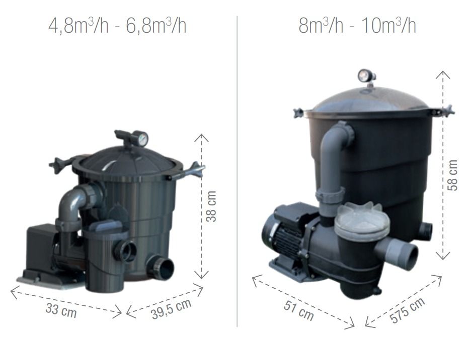 | Rýchlosť filtrácie | 4,8 m³/h | 6,8 m³/h | 8 m³/h | 10 m³/h | ||