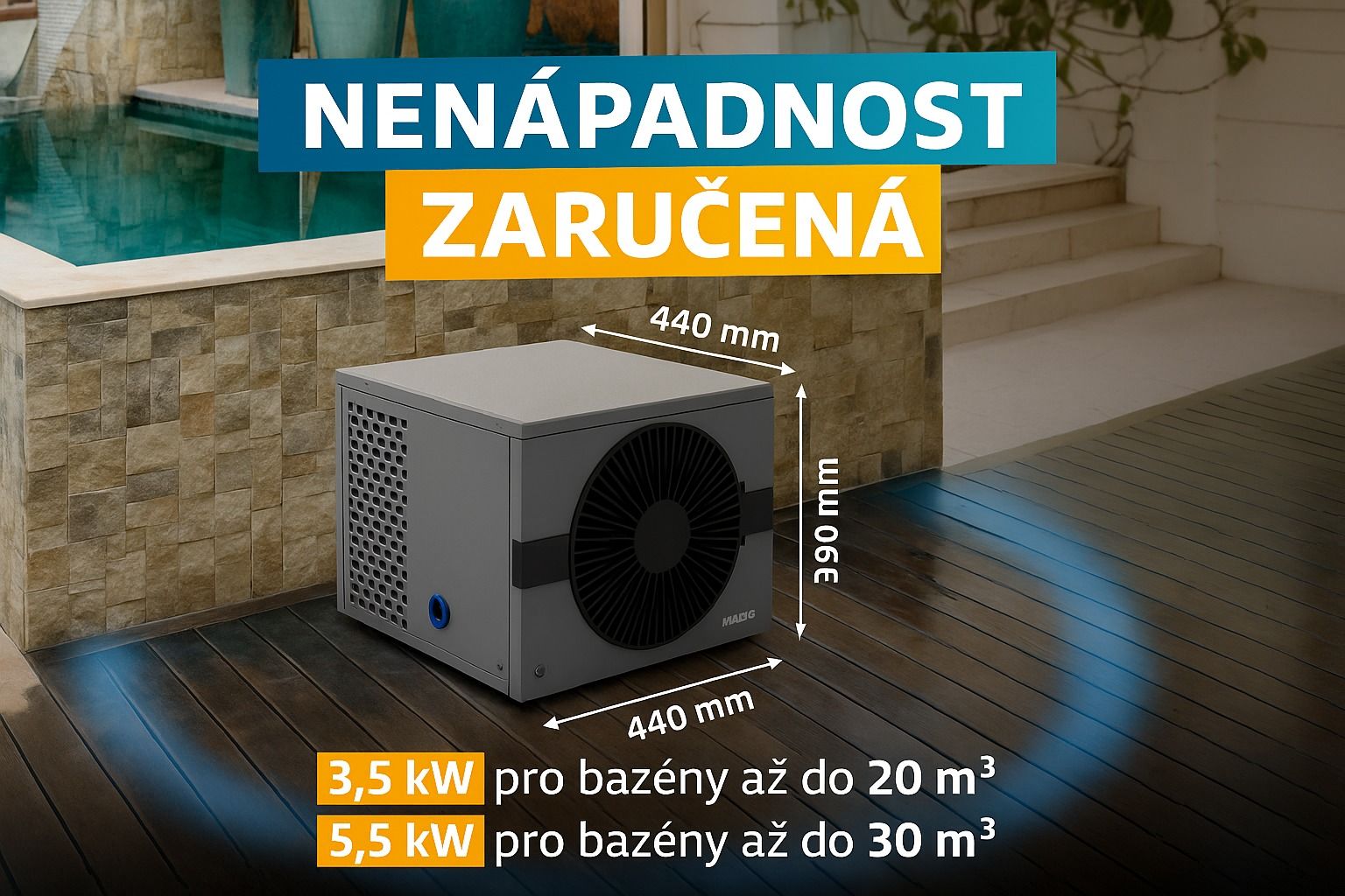 Kompaktné, tiché a pripojené tepelné čerpadlo pre bazény do 30 m³.