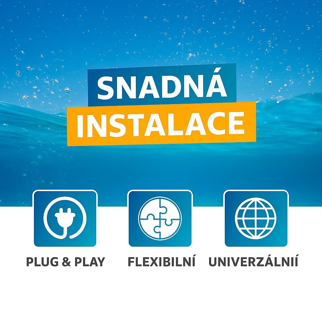 Nie je potrebná žiadna obtoková súprava ani technický zásah. Po pripojení k filtračnému systému bazéna je pripravený na použitie.