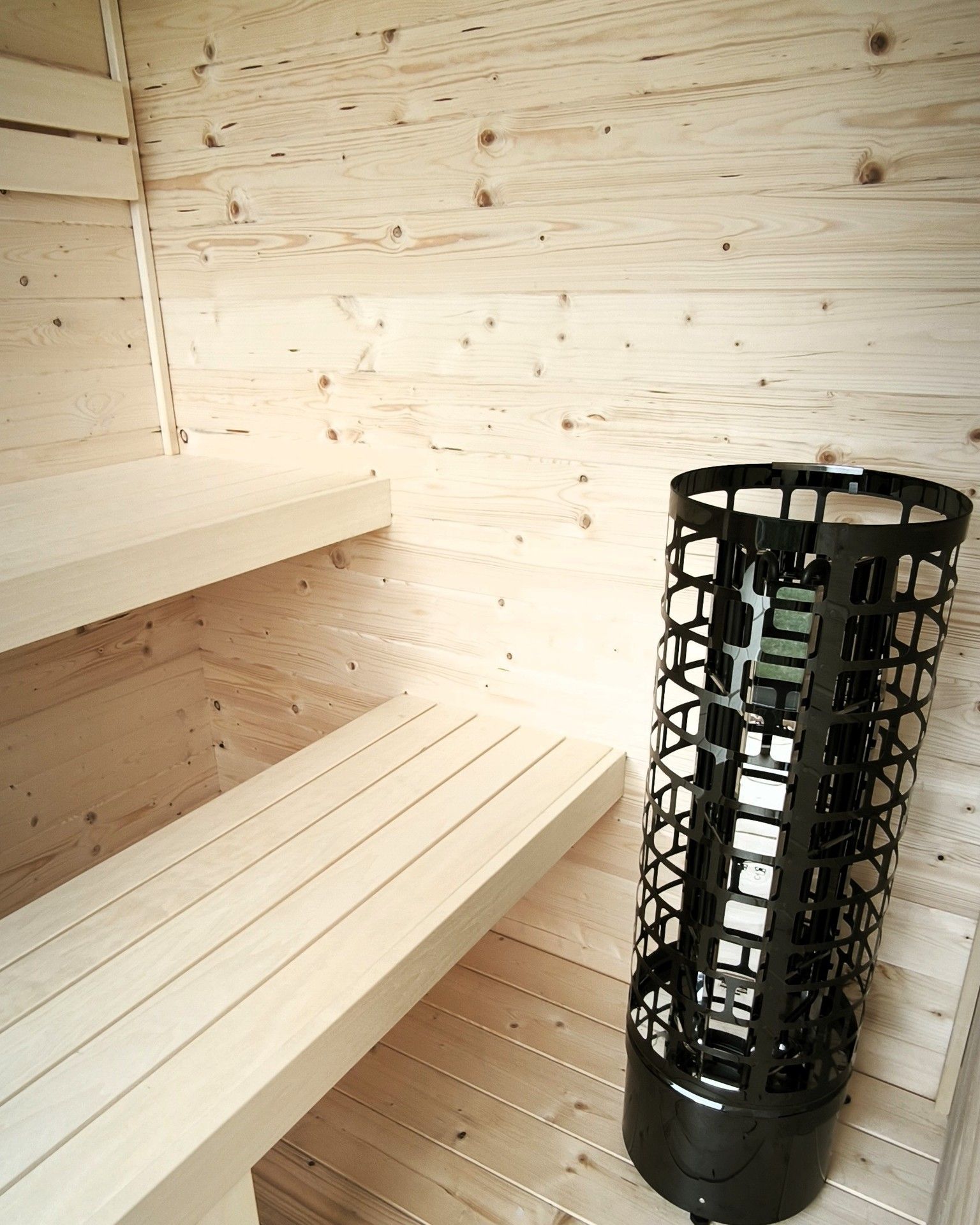 - Saunové lavice vyrobené z LunaWood alebo Thermory
