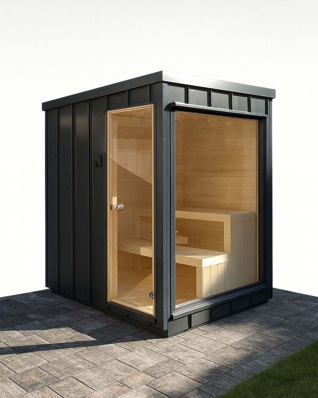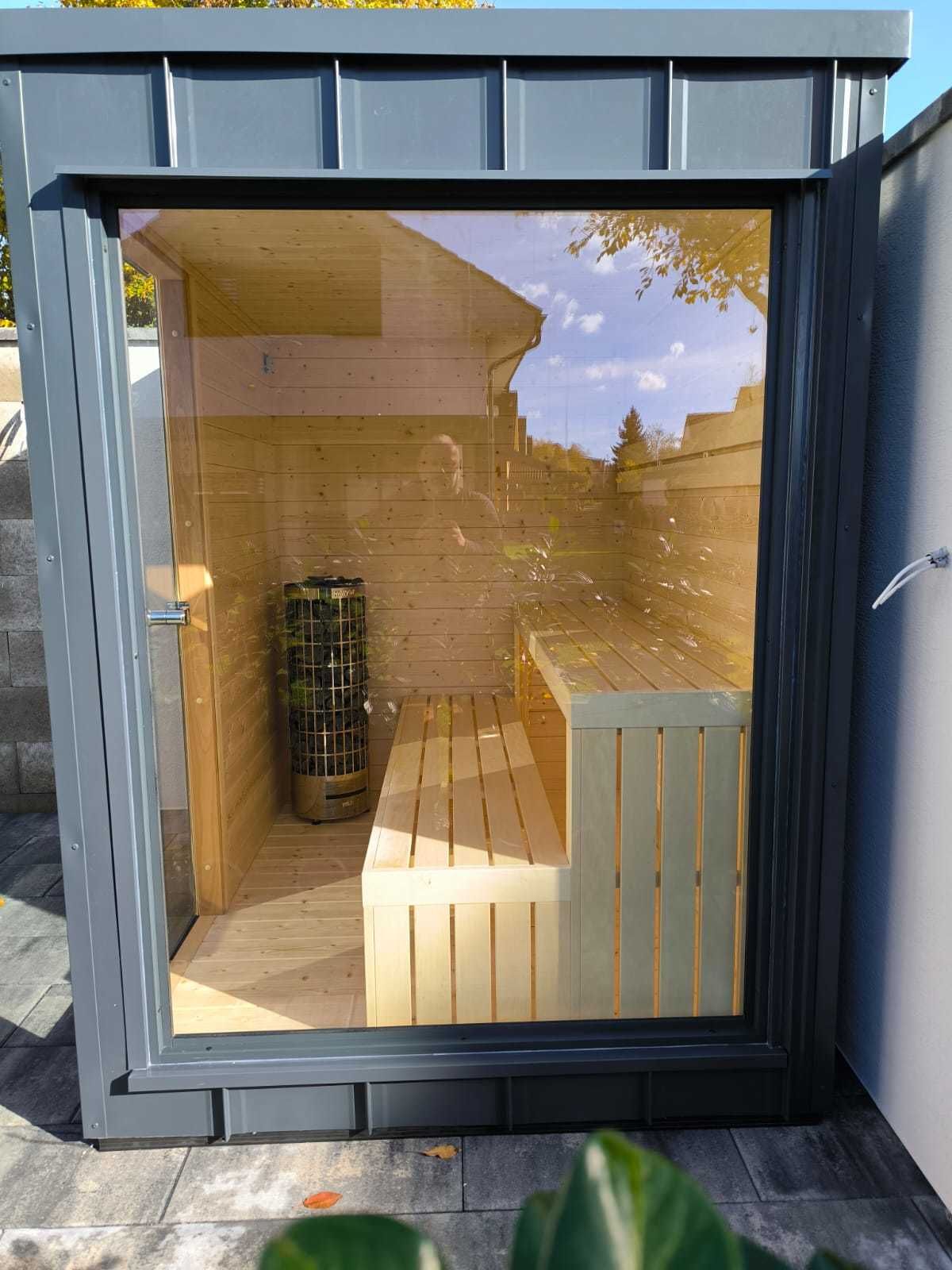 Exteriérová sauna pre 4-5 osôb s bezúdržbovým povrchom.