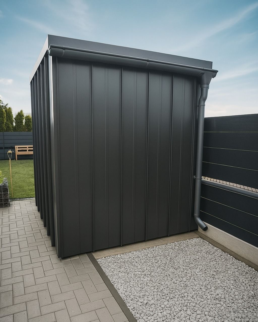 - Fasáda vyrobená z Click panel Antracit
